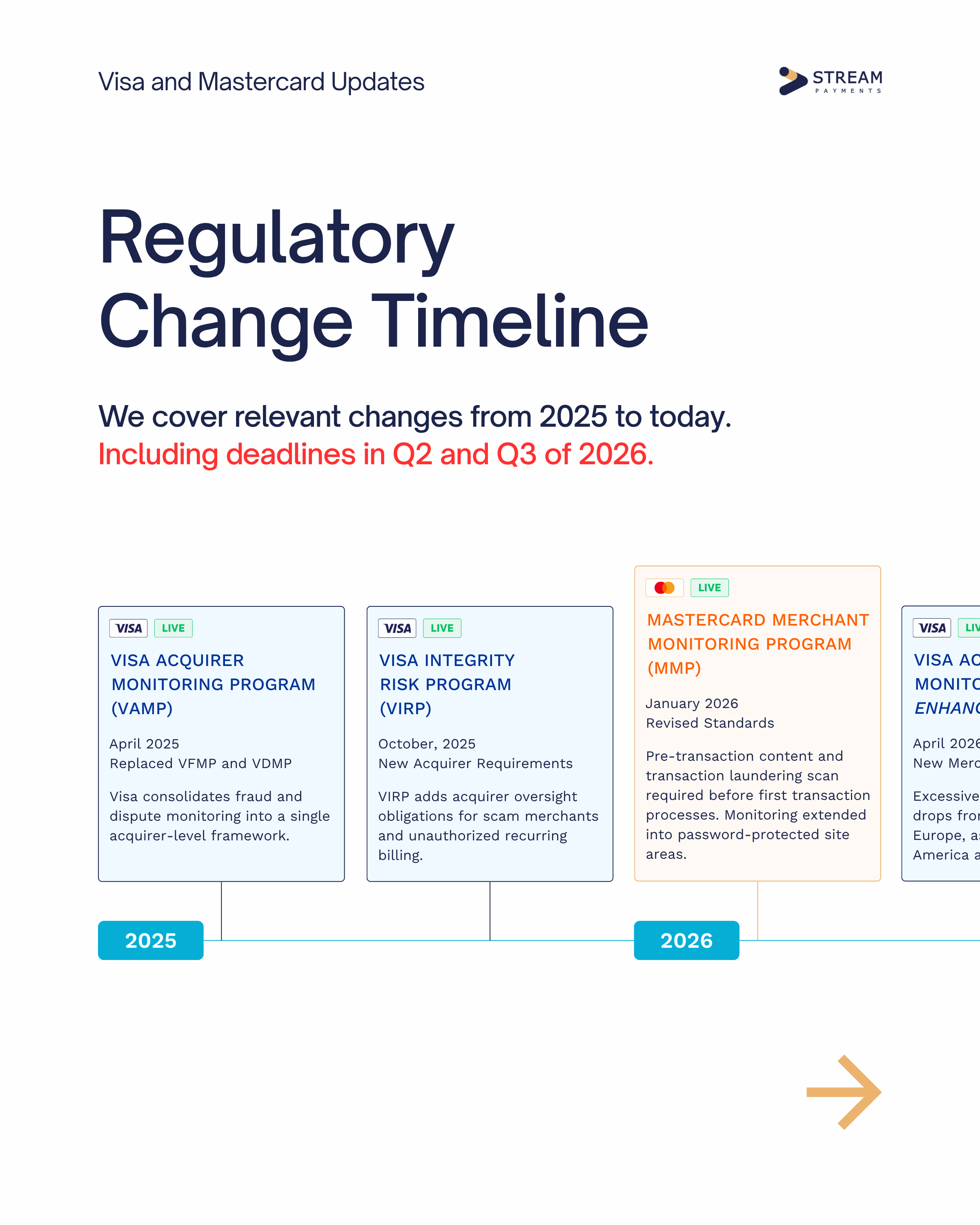 It covers what changed under VAMP and the revised Mastercard Merchant Monitoring Program, and the eight actions merchants need to have in place now. Each checklist item carries scheme-specific attribution so your team knows exactly which program requires it.
